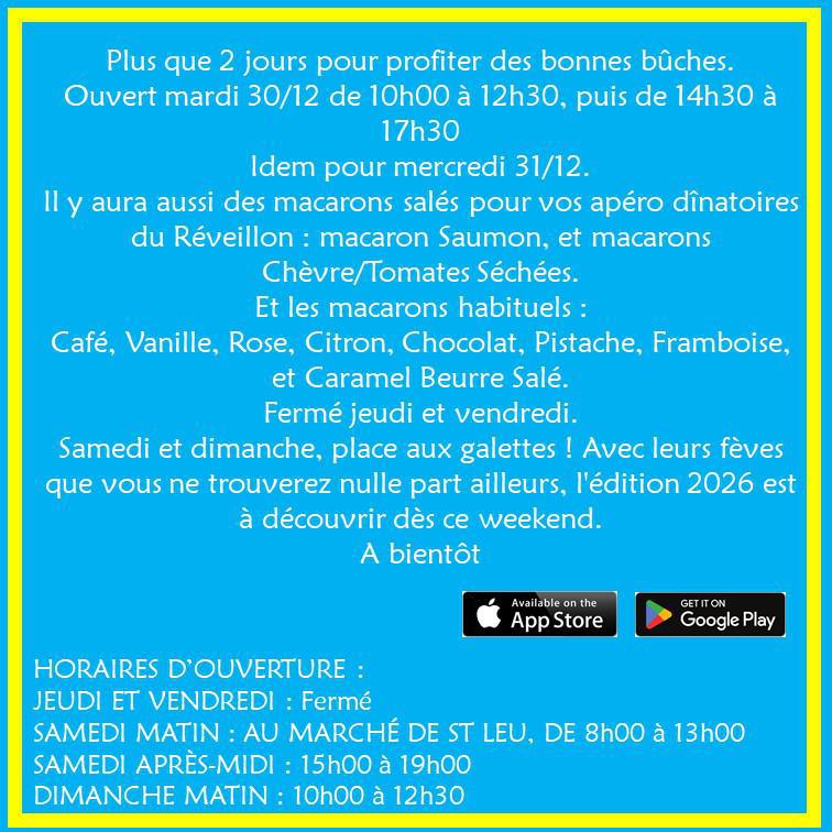 Ouvert mardi 30/12 de 10h00 à 12h30, puis de 14h30 à 17h30