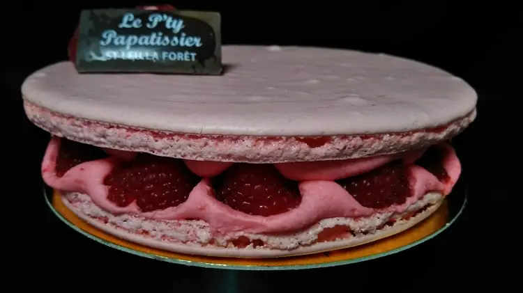 Biscuit cacao | Mousse chocolat noir | Chantilly (parfumée au kirsch sur demande) | Cerises (parfumées au kirsch sur demande) | Copeaux de chocolat